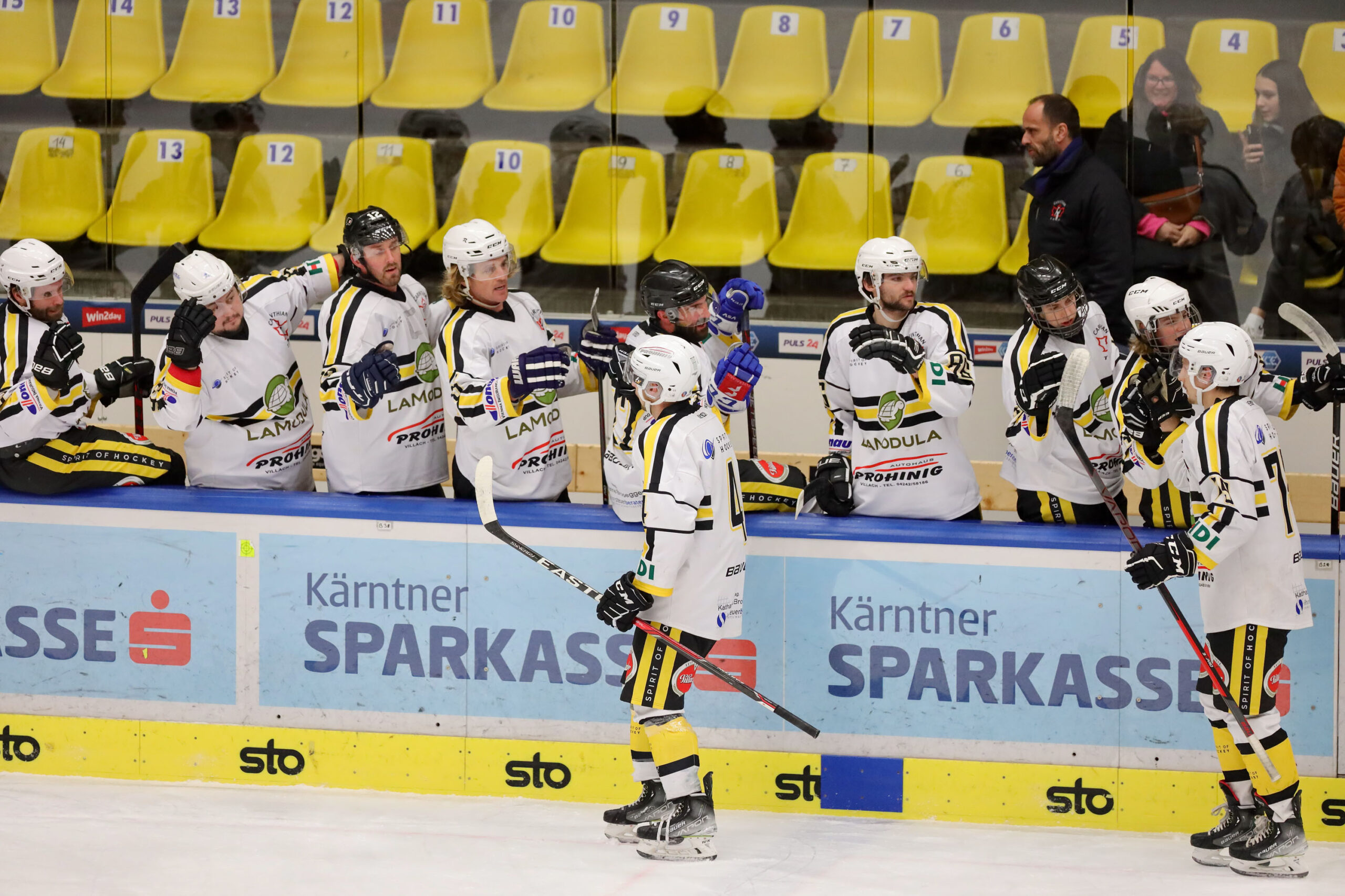 Endstand: 5:1 (2:0, 1:1, 2:0). Tore fürs Carinthian: Prohinig(2), Petrini, Schurig, Steinhauser.